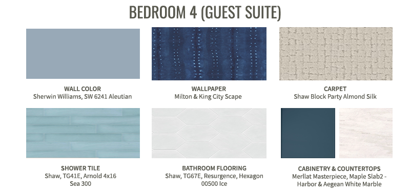 - Wall & Trim Color (Bedroom 4+En Suite Bath): Sherwin Williams, 6241 Aleutian
